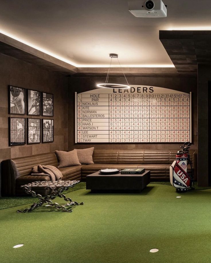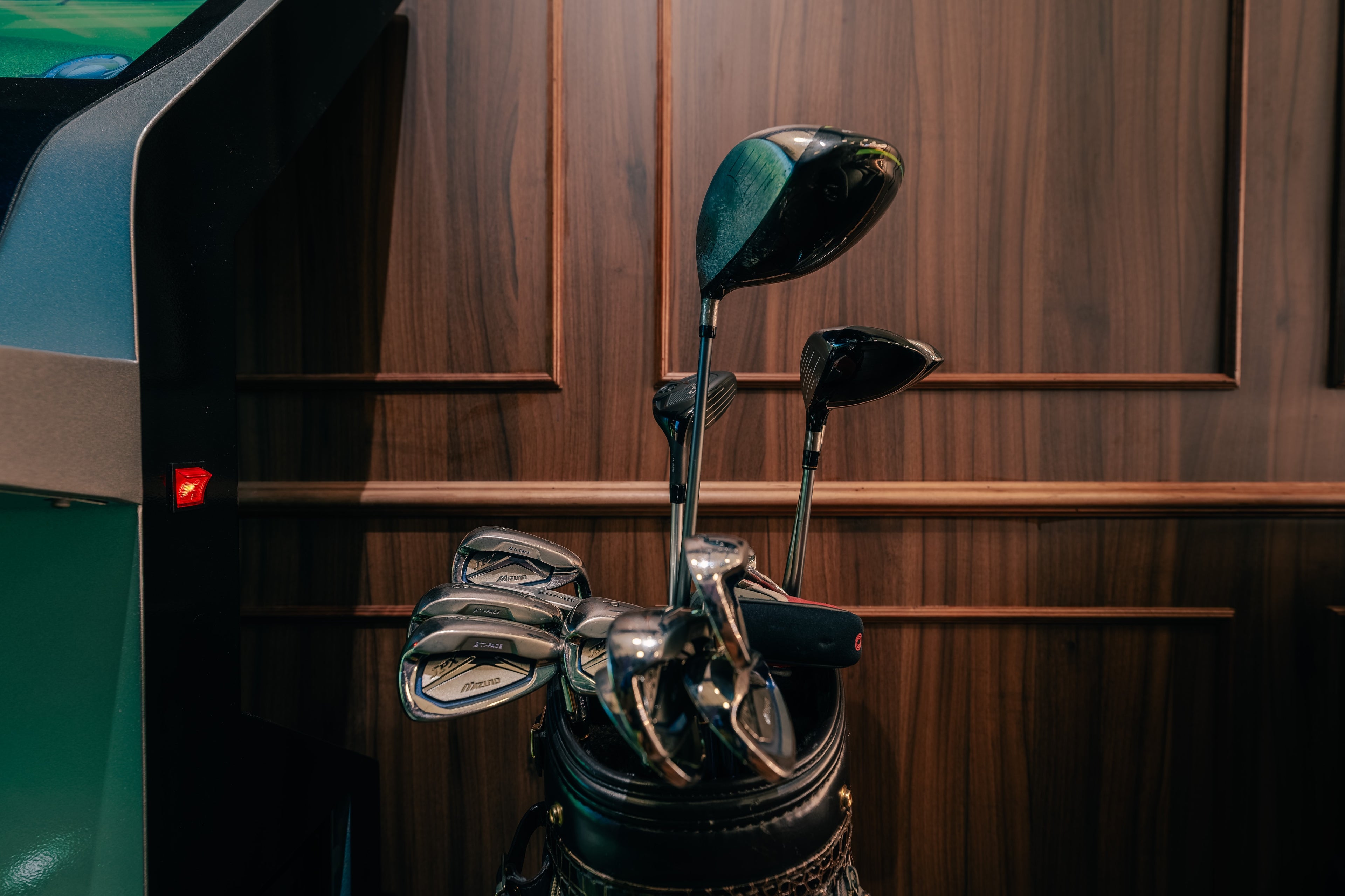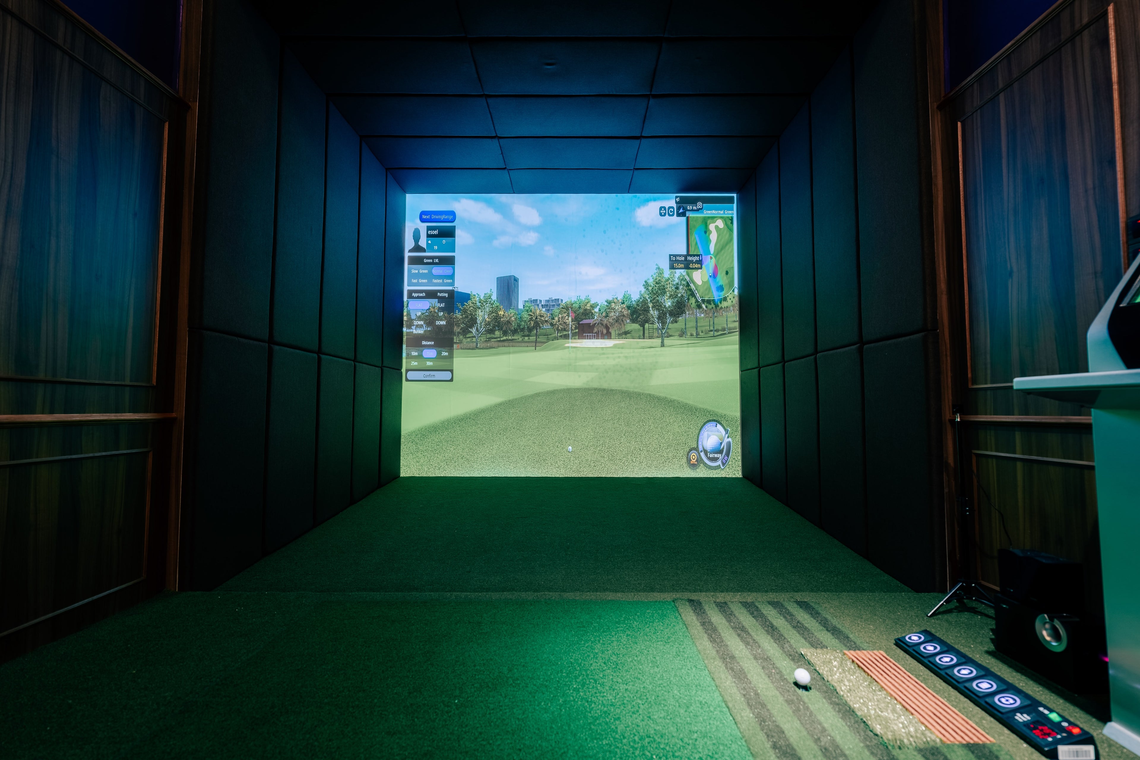 Warm wood, soft acoustics and lounge-level comfort. The room is designed to calm your mind and support your best swing.